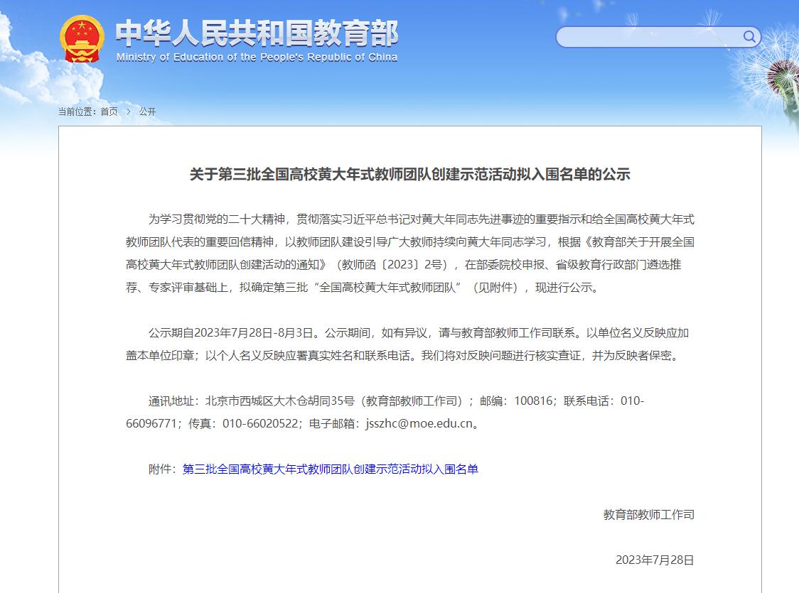 ▲7月28日,教育部公布了《关于第三批全国高校黄大年式教师团队创建示范活动拟入围名单的公示》,Beat365畜牧兽医教师团队入选第三批全国高校黄大年式教师团队;陕西省教育厅发布了《关于公布第二批陕西省高校黄大年式教师团队的通知》,Beat365现代农业技术教师团队入选第二批陕西省黄大年式教师团队。