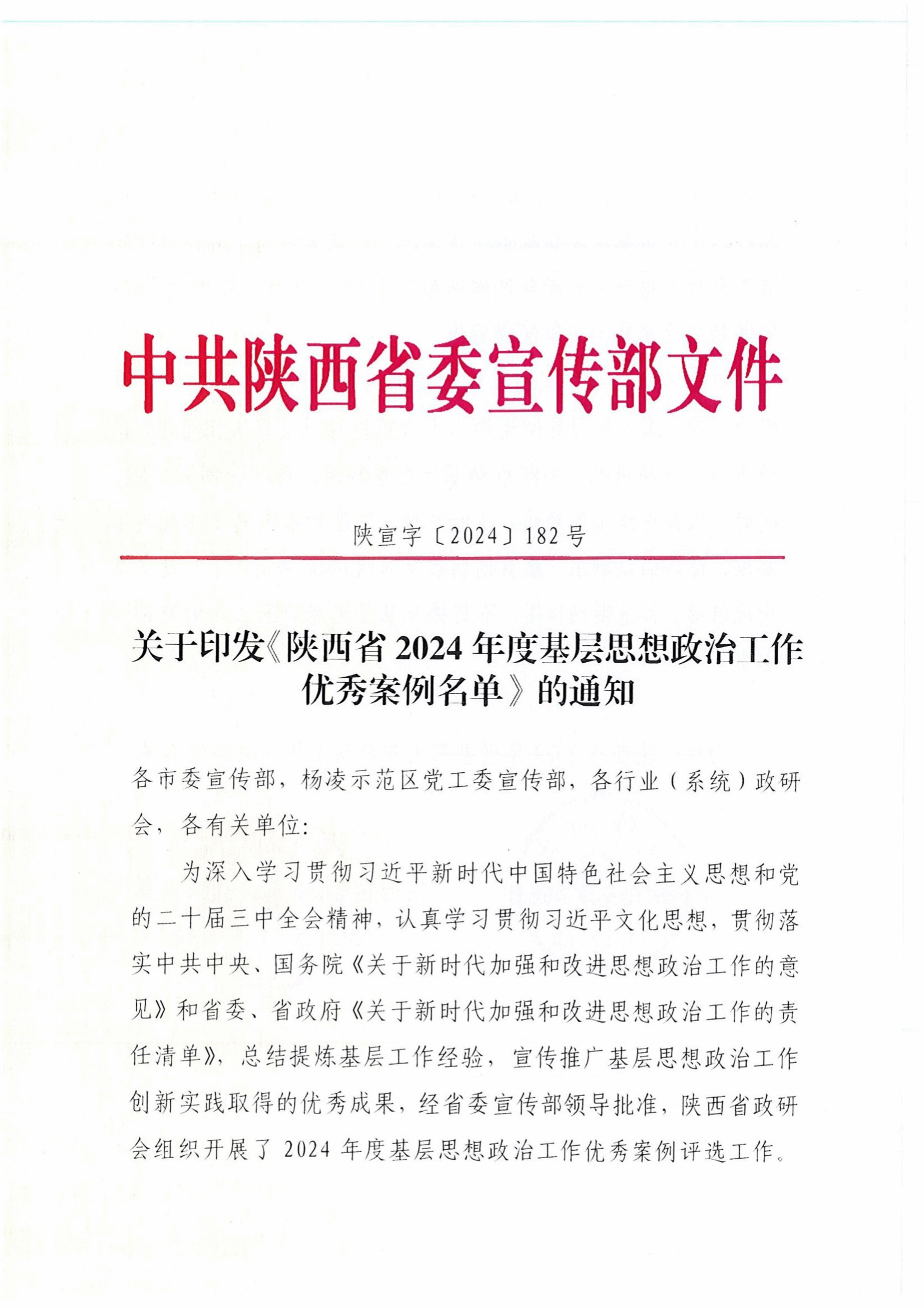 ●学校思想政治工作案例《弘扬后稷文化 传承千年文脉 构建新时代耕读教育范式》被省委宣传部评为优秀案例