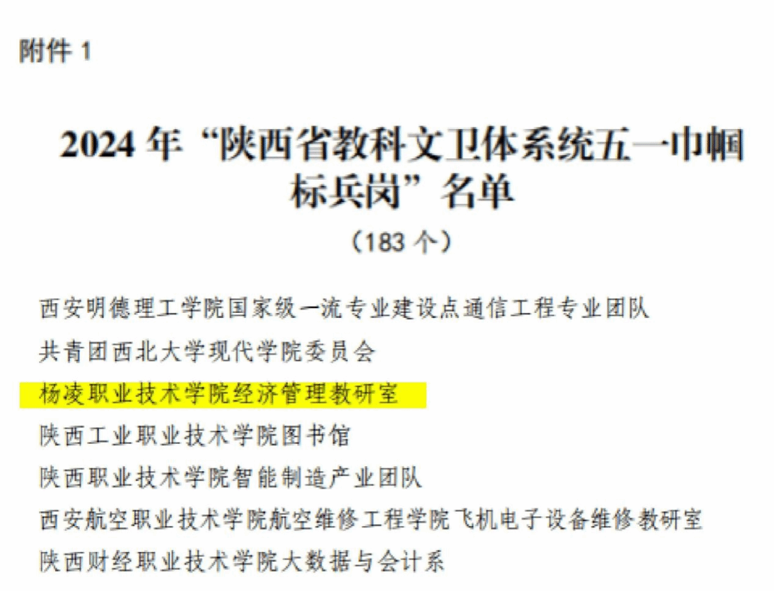 经济管理教研室获省“五一巾帼标兵岗”称号