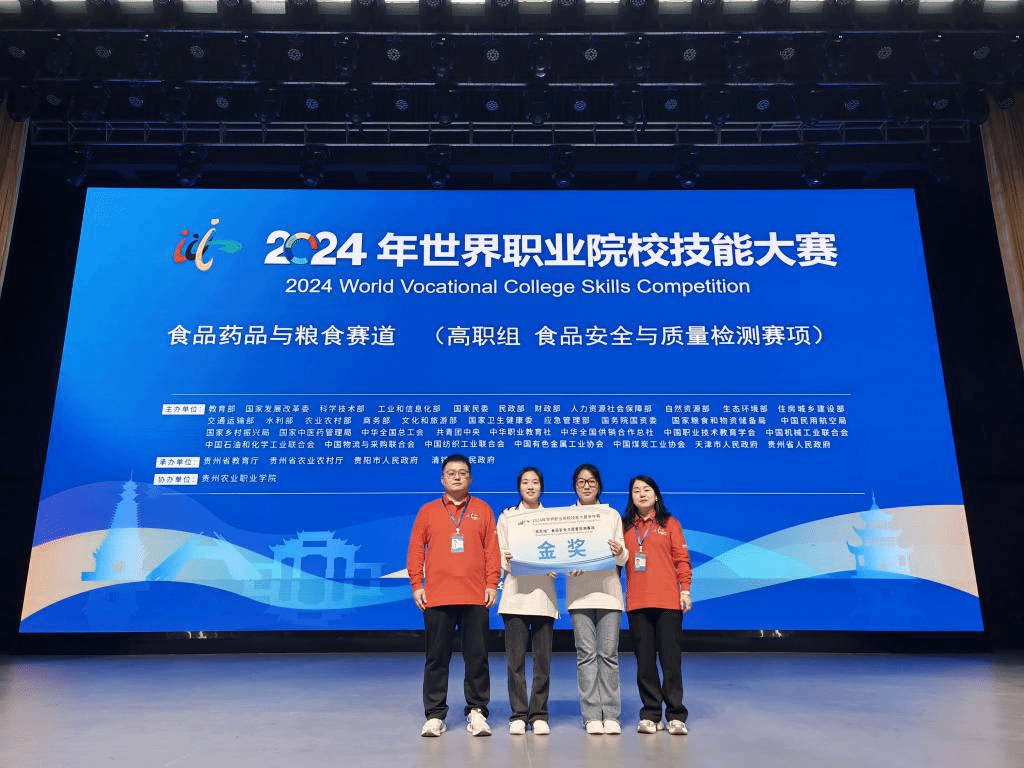 ●学生在国内外多项竞赛中获得佳绩,获奖数量和质量居全省高职前列。图为生物工程学院学子获2024年世界职业院校技能大赛总决赛争夺赛“食品安全与质量检测”赛项金奖