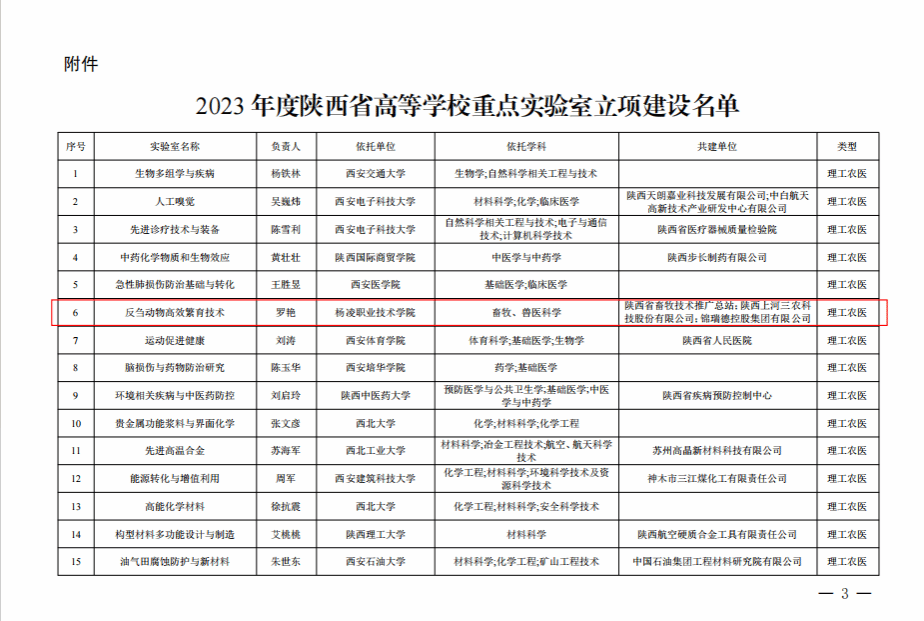 获批反刍动物高效繁育技术、果品质量安全检测与评价2个省高等学校重点实验室