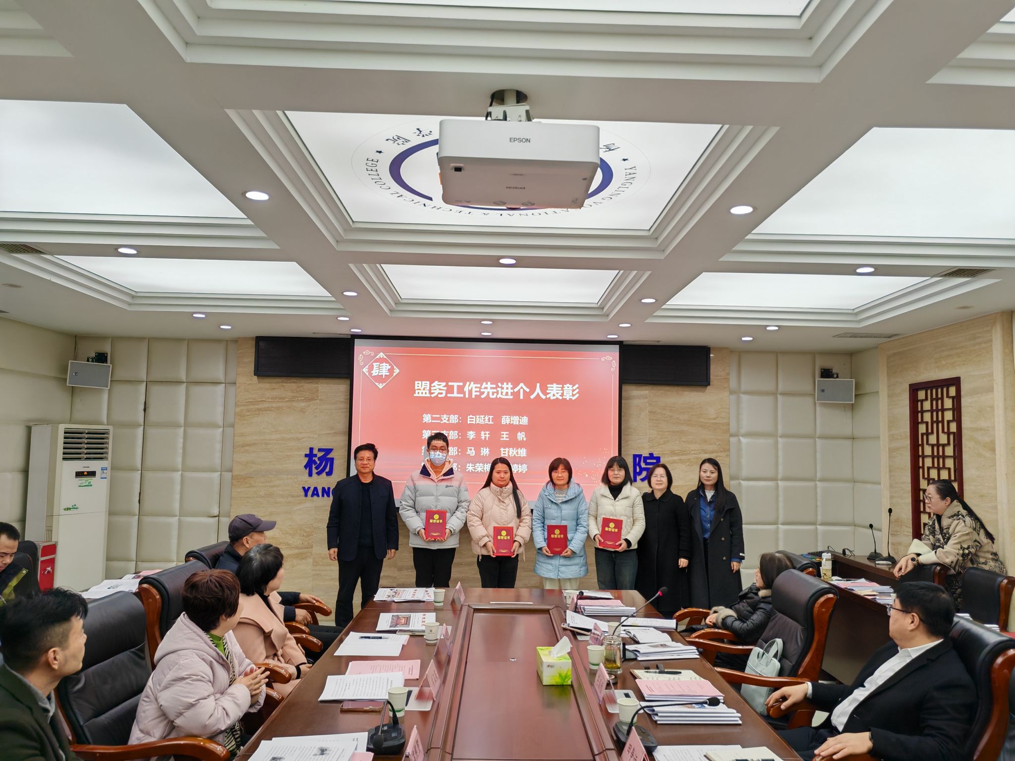 1月14日上午,民盟杨凌职业技术学院委员会召开2024年度总结表彰大会。党委副书记刘瑞明,党委委员、组织部(统战部)部长田争运出席座谈会。民盟杨凌职业技术学院委员会副主委韩东锋、李金金、马安良,委员会全体委员及盟员代表30余人参加会议。