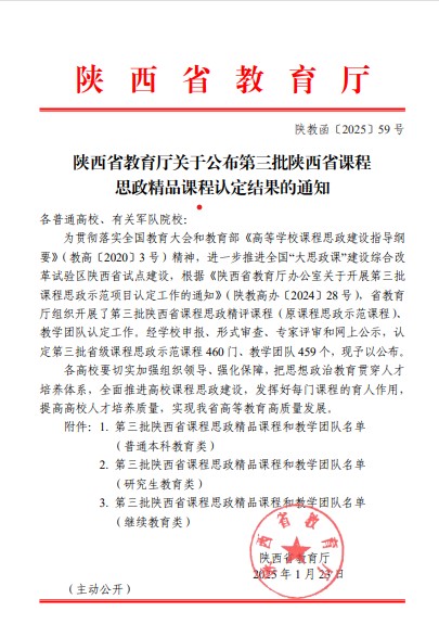 近日,陕西省教育厅公布了第三批陕西省课程思政精品课程认定结果,Beat365李博副教授主持的《管理学原理》获批继续教育类课程思政精品课程和教学团队。