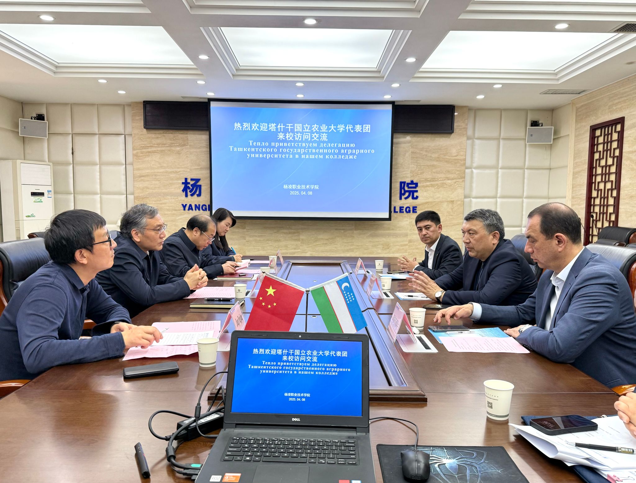 奥布洛穆拉多夫介绍了塔什干国立农业大学的基本情况,作为乌兹别克斯坦农业类专业排名第一的知名院校,塔什干国立农业大学开设有本科、研究生、博士等课程,希望与杨凌职业技术学院深化师生交流、农业技术人员培训、教学标准互换等合作。