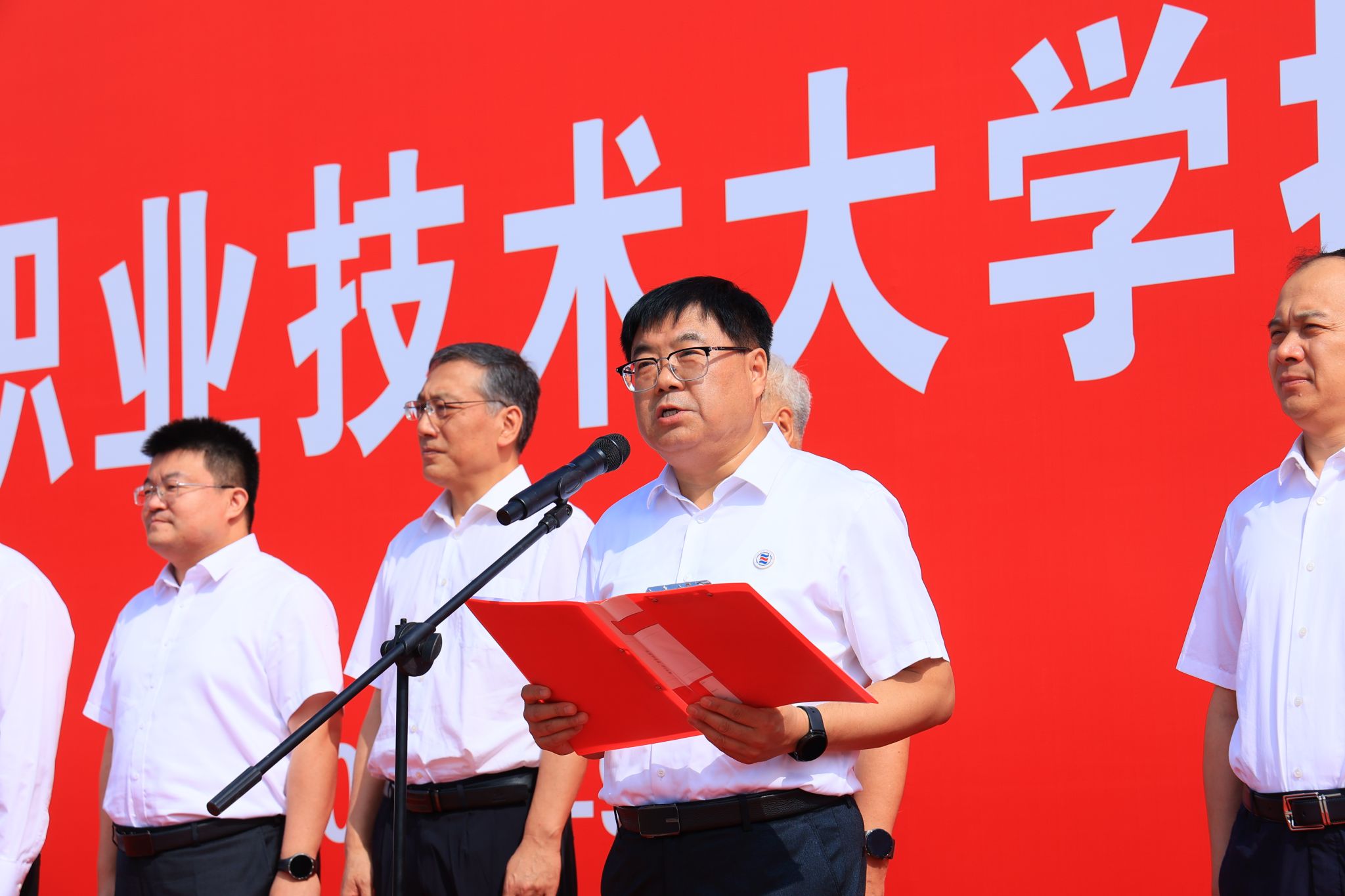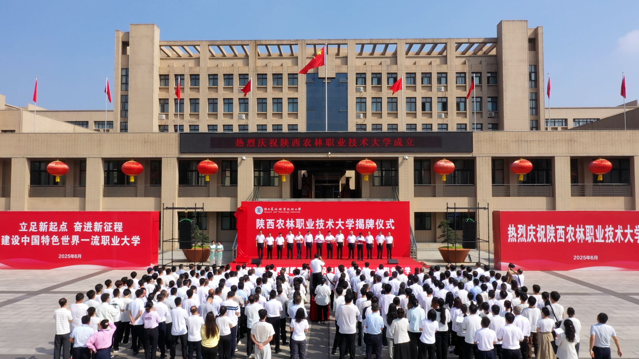 西北农林科技大学党委书记黄思光,杨凌示范区党工委书记史高领,省委教育工委委员、省教育厅副厅长吴振磊,杨凌示范区党工委委员、杨陵区委书记李函,杨陵区委副书记、区长李朝喜;学校党委书记韩明军,校长仲伟周,原党委书记王周锁,党委副书记、纪委书记王勇胜,副校长祝战斌、蒋平江、胡俊鹏等出席揭牌仪式。省教育厅、杨凌示范区、西北农林科技大学、杨陵区有关领导,学校校友及师生代表230余人,共同见证学校跨越发展的历史性时刻。揭牌仪式由学校党委副书记刘瑞明主持。