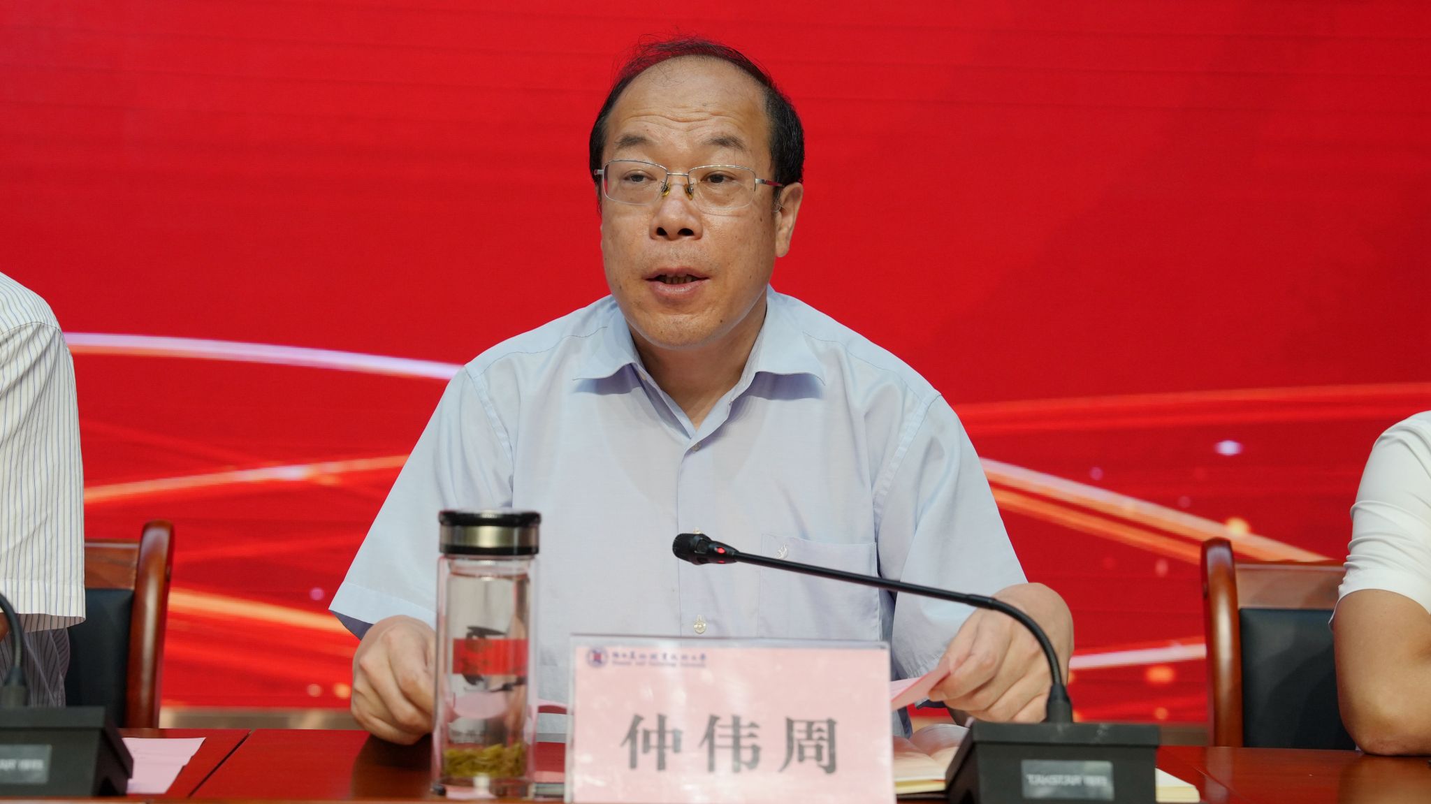 校长仲伟周主持会议并作总结讲话