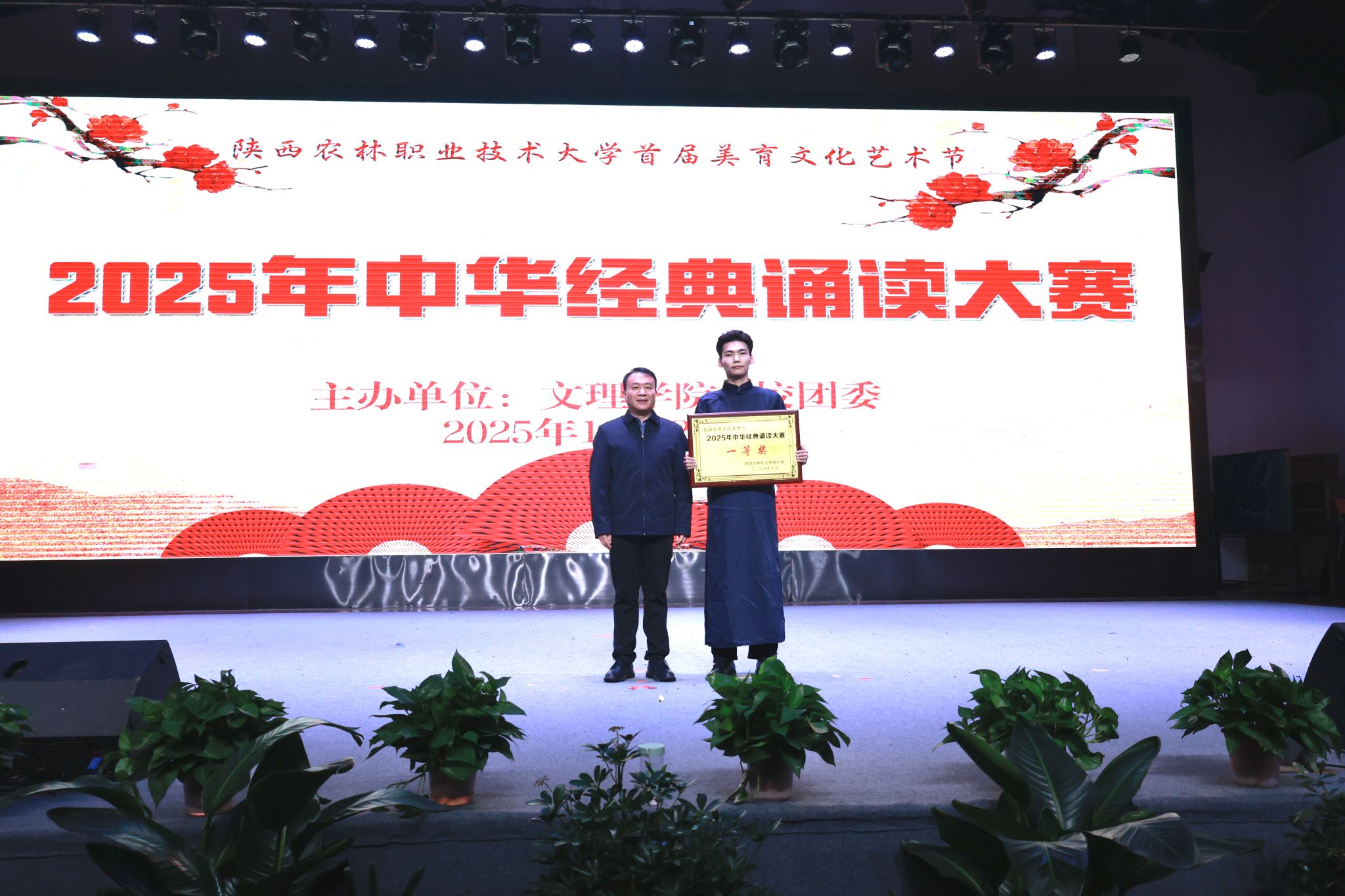 启动仪式结束后,2025年中华经典诵读大赛精彩开演。经过各学院选拔推荐,11支参赛队伍进入决赛。比赛中,选手们以饱满的激情深情诵读,诠释了中华经典的永恒魅力。经激烈角逐,水利工程学院获一等奖,生物工程学院、建筑工程学院获二等奖,旅游与管理学院、经济与贸易学院、生态环境工程学院、机电工程学院获三等奖,动物工程学院、药物与化工学院、交通与测绘工程学院、信息工程学院获优秀奖。