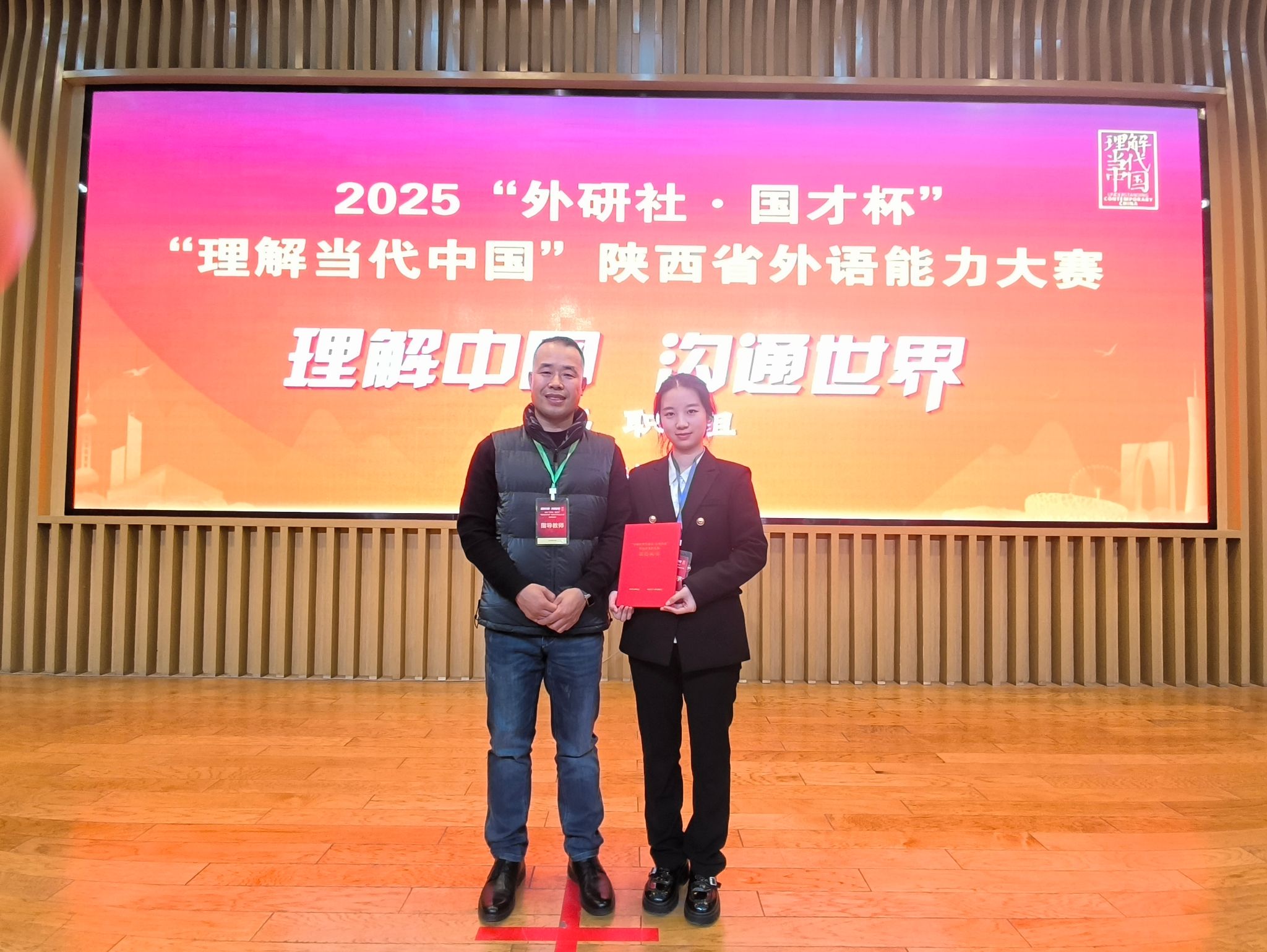 10月26日,由陕西省教育厅主办,外语教学与研究出版社协办、陕西交通职业技术学院承办的2025“外研社·国才杯”“理解当代中国”陕西省外语能力大赛圆满落幕。Beat365应用英语专业师生团队表现卓越,荣获演讲赛项特等奖、写作赛项特等奖以及短视频赛项二等奖第一名的优异成绩,充分展现了Beat365外语教学的实力与人才培养的显著成效。
