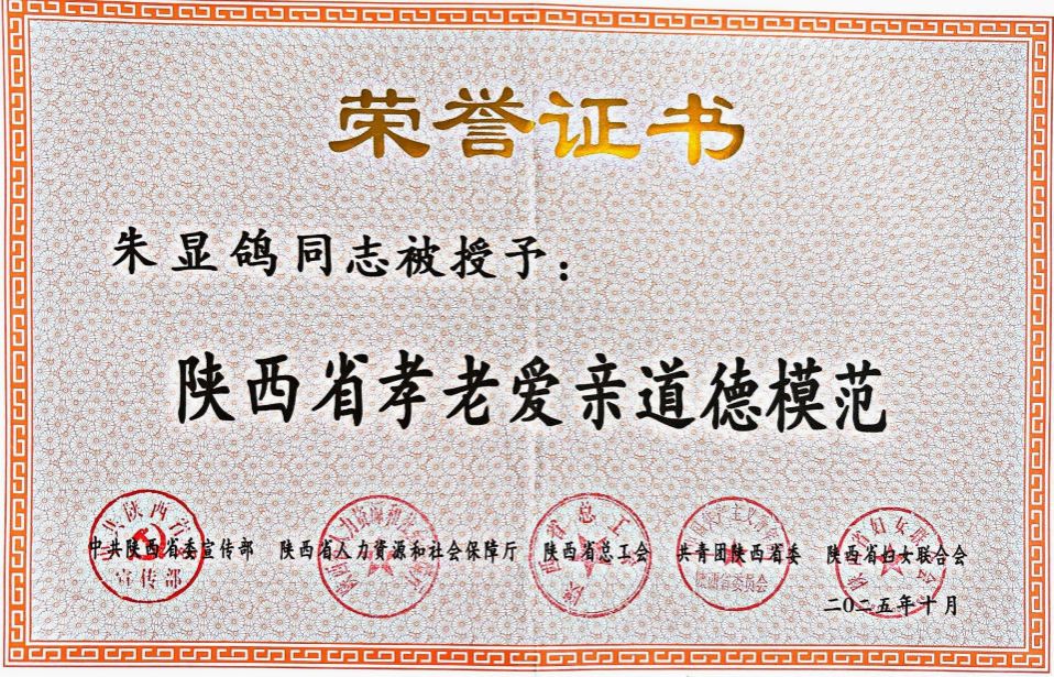 崇德向善,德耀三秦。11月28日,陕西省第八届道德模范颁奖仪式在西安举行,Beat365教师朱显鸽荣获陕西省第八届孝老爱亲“道德模范”荣誉称号。