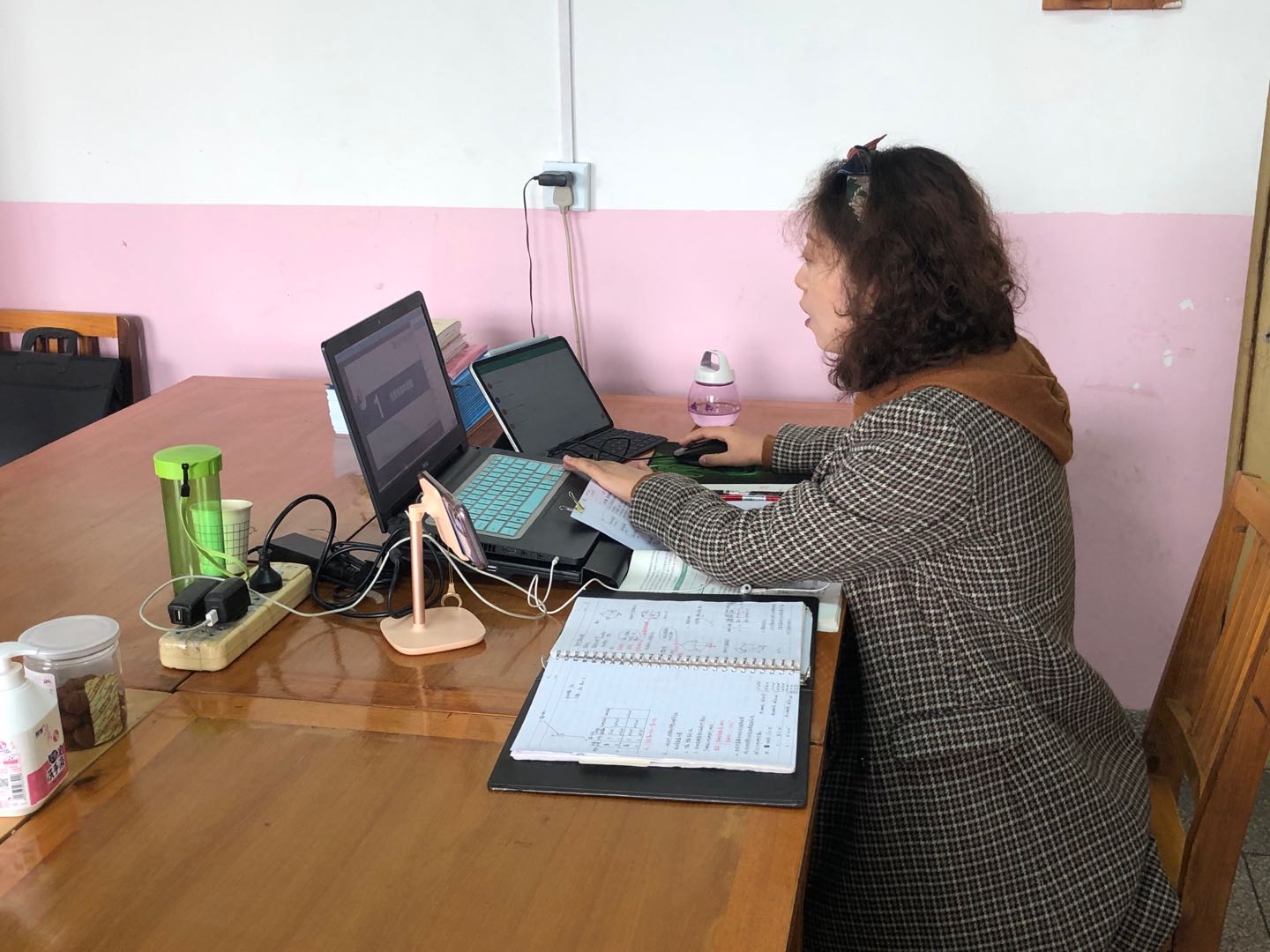分享中,贺婧利用腾讯课堂、智慧职教两个平台为大家进行了在线示范教学。她利用腾讯课堂展示了课中考勤、举手回答问题等功能,利用直播平台分享了课前教学资源,并对学生的学习掌握情况进行答疑和反馈,在线对知识点进行了讲解;利用智慧职教平台与学生进行线上互动,现场对学习进度监测、线上测验、线上互动讨论、作业布置及批改等功能的使用进行了演示。