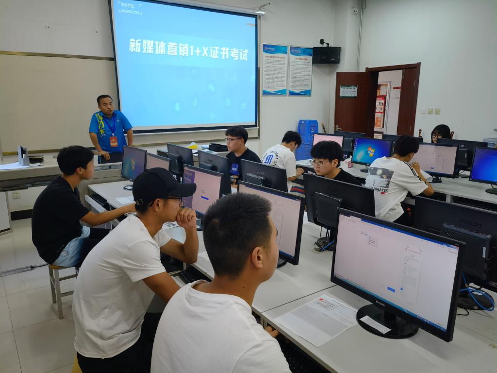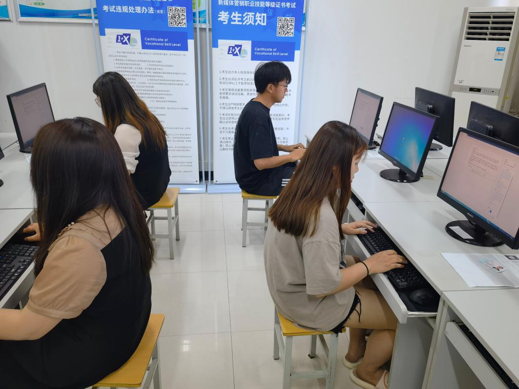 “1+X”新媒体营销职业技能等级(中级)考试严格按照教育部相关规定和考核相关标准有序进行,考前该院对29名报名学生进行了培训,经过多次考试和筛选,最后确认25名学生参加此次考试。本次技能理论考试、技能操作能力考试合并采用闭卷机考方式,考试时长共计120分钟。成绩达到60分及以上为合格,成绩合格者颁发相应级别的职业技能等级证书。