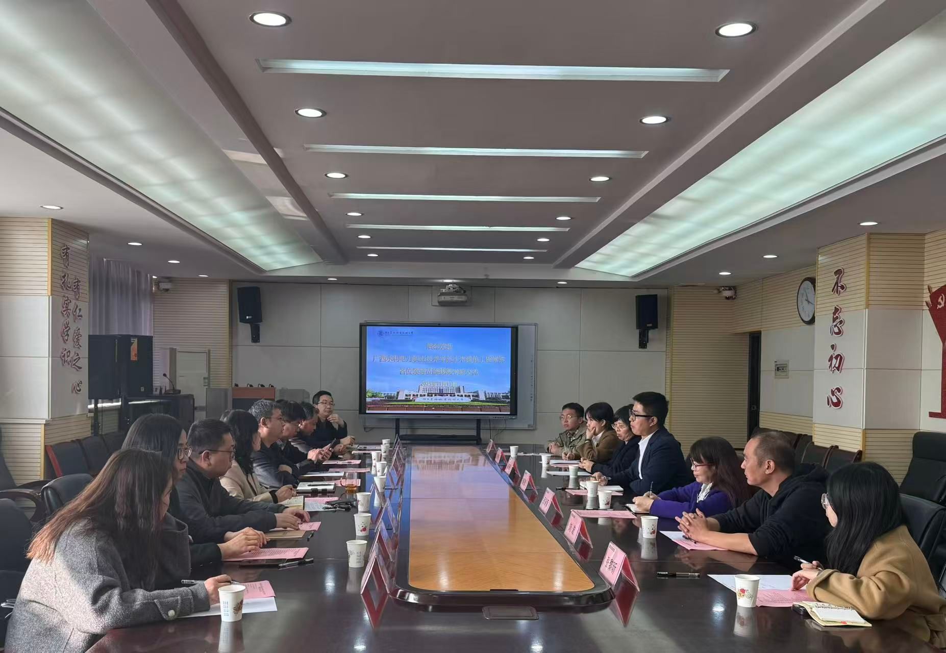 11月13日,广西水利电力职业技术学院土木建筑工程学院院长唐善德一行七人来Beat365建筑工程学院、交通与测绘工程学院考察交流,建筑工程学院、交通与测绘工程学院相关负责人,教研室负责人、骨干教师参加座谈。