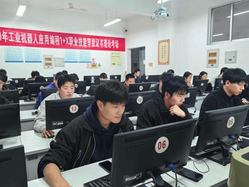 11月14日至16日,机电工程学院在工业机器人实训中心进行2025年工业机器人应用编程职业技能等级证书(中级)考核。工业机器人技术专业、电气自动化技术专业31名同学,以及12名社会考生共43人参加考核。