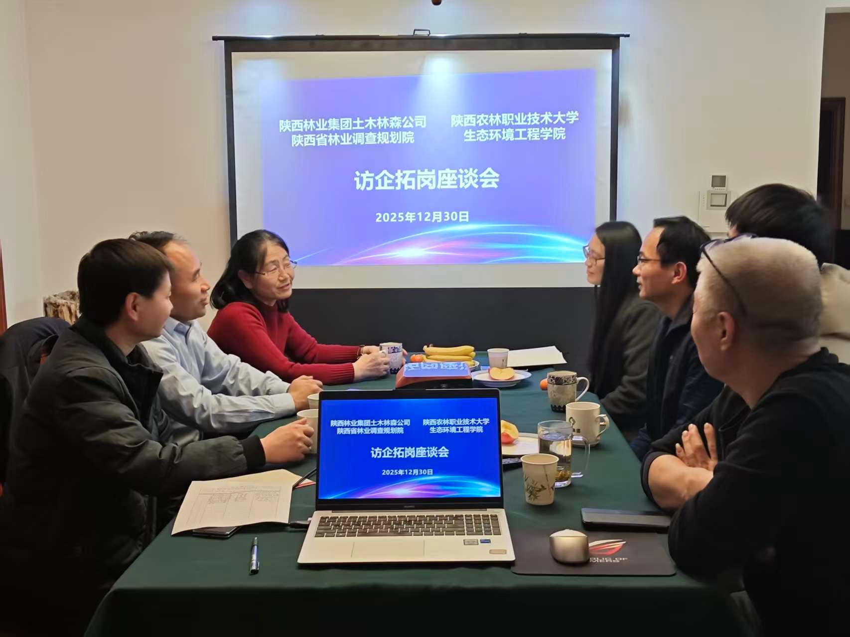 12月30日,生态环境工程学院负责人带队赴陕西林业集团土木林森发展有限责任公司、陕西林业生态修复有限公司、中国林业与环境建设促进会数字林业分会等企业和行业协会开展合作交流。
