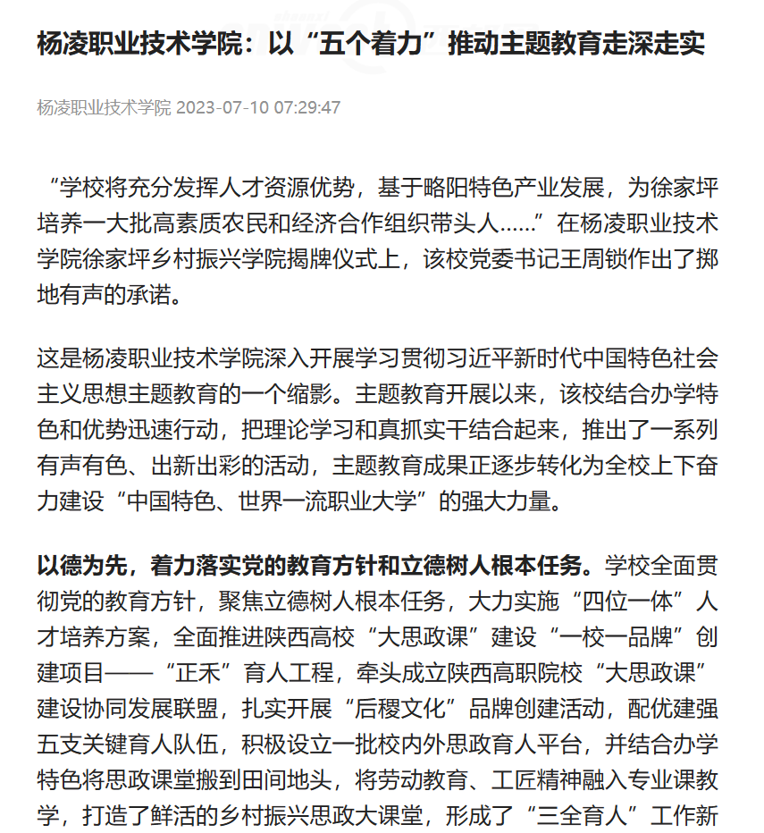 【陕西头条】杨凌职业技术学院:以“五个着力”推动主题教育走深走实