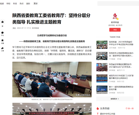 【教师报·今日头条号】陕西省委教育工委省教育厅:坚持分层分类指导 扎实推进主题教育
