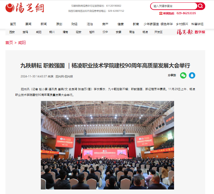 学农爱农,九十载弦歌不辍;职教强国,新征程芳华赓续。11月29日上午,杨凌职业技术学院建校90周年高质量发展大会举行。