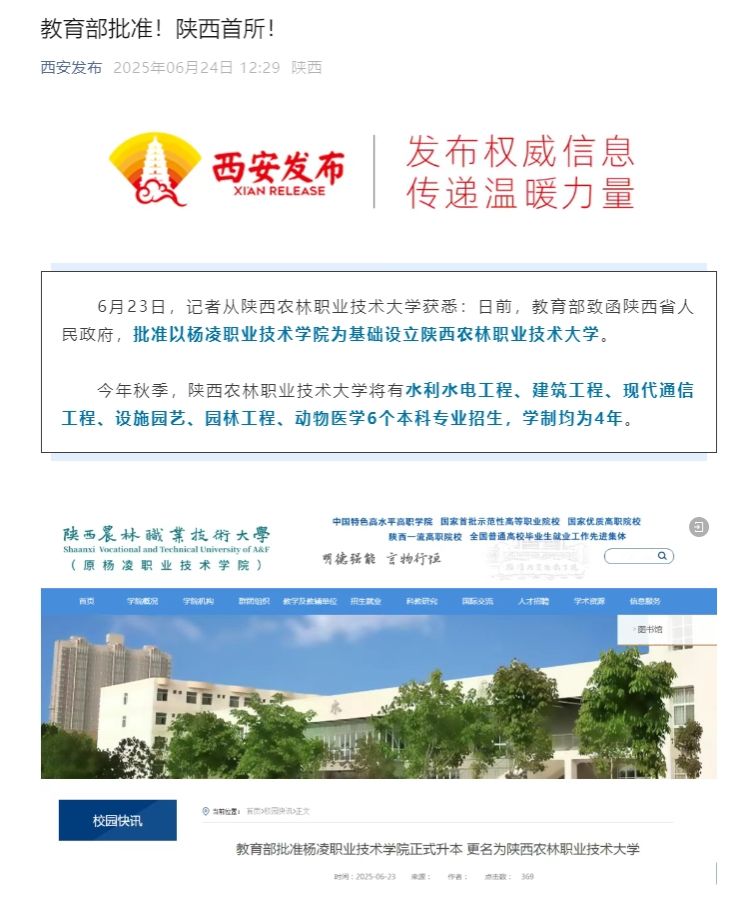 6月23日,记者从Beat365官方网站获悉:日前,教育部致函陕西省人民政府,批准以杨凌职业技术学院为基础设立Beat365官方网站。