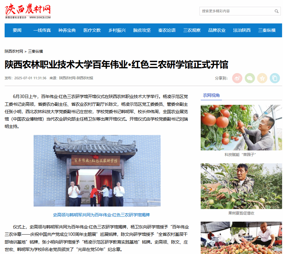 参加开馆仪式的还有省委农村工作领导小组办公室秘书处、杨凌示范区党工委管委会办公室负责人,全国农业展览馆(中国农业博物馆)当代农业研究部、社教部专家,西北农林科技大学党委宣传部相关负责人,以及学校领导、党委委员、“光荣在党50年”老党员,处级干部和学生党员代表。