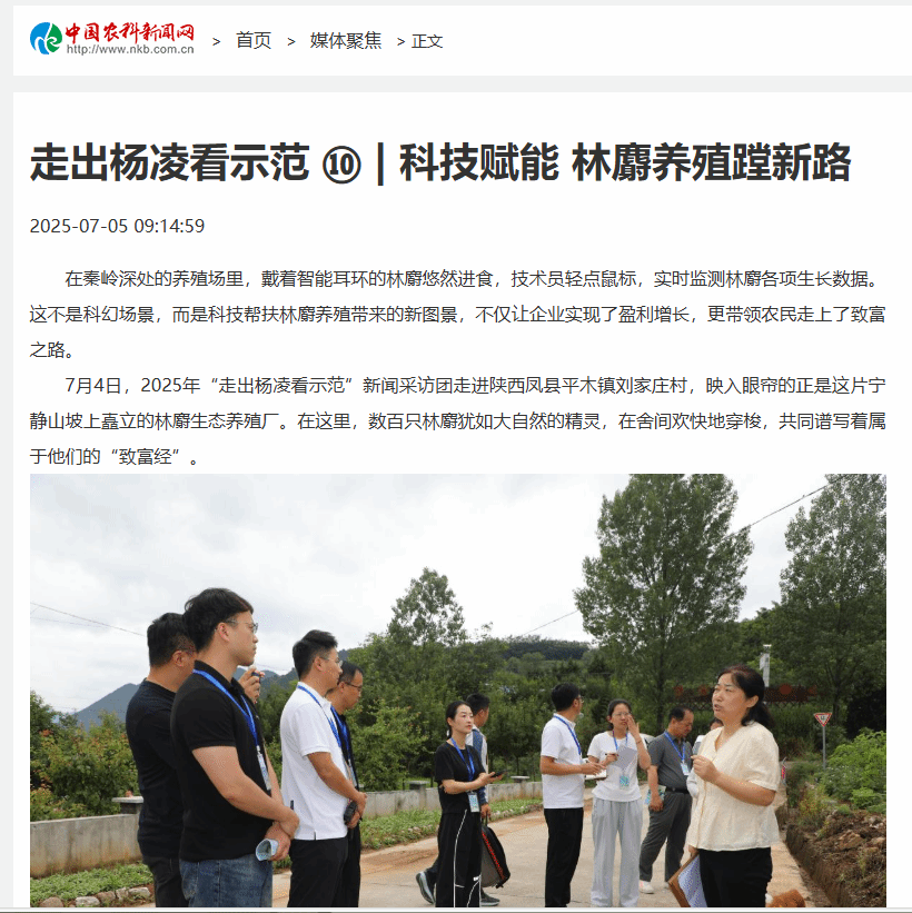 7月4日,2025年“走出杨凌看示范”新闻采访团走进陕西凤县平木镇刘家庄村,映入眼帘的正是这片宁静山坡上矗立的林麝生态养殖厂。在这里,数百只林麝犹如大自然的精灵,在舍间欢快地穿梭,共同谱写着属于他们的“致富经”。