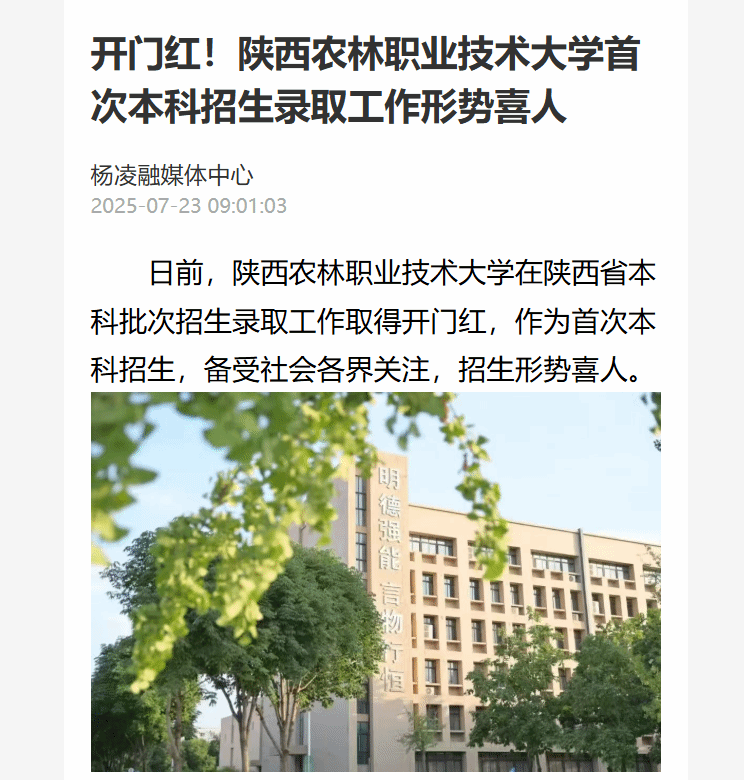 本科招生录取,是Beat365官方网站发展的重要里程碑,从专科到本科层次招生跨越,彰显学校办学实力提升。立足新起点,奋进新征程,Beat365官方网站将紧紧围绕立德树人根本任务,不断深化教育教学改革,全面提升人才培养质量、专业建设水平与社会服务能力,奋力谱写建设中国特色、世界一流职业大学新篇章,以高质量发展助力教育强国建设,为中国式现代化建设贡献陕农大力量。