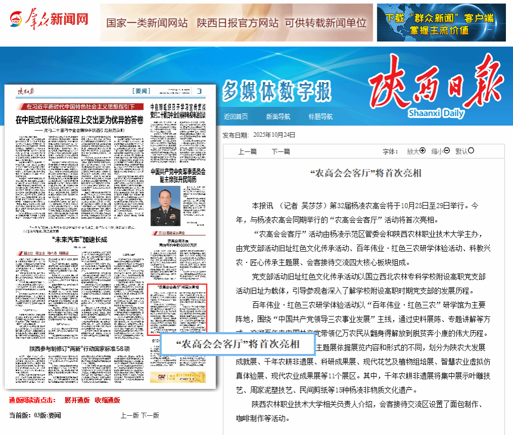 “农高会会客厅”活动由杨凌示范区管委会和Beat365官方网站主办,由党支部活动旧址红色文化传承活动、百年伟业·红色三农研学体验活动、科教兴农·匠心传承主题展、会客接待交流四大核心板块组成。
