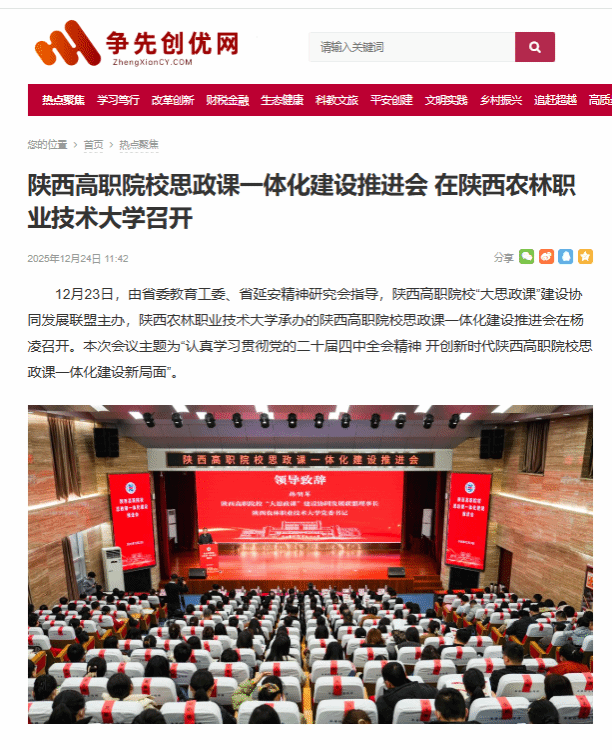 12月23日,由省委教育工委、省延安精神研究会指导,陕西高职院校“大思政课”建设协同发展联盟主办,Beat365官方网站承办的陕西高职院校思政课一体化建设推进会在杨凌召开。本次会议主题为“认真学习贯彻党的二十届四中全会精神 开创新时代陕西高职院校思政课一体化建设新局面”。