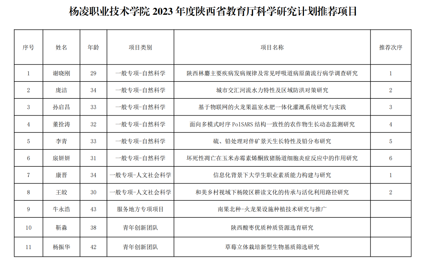 根据《陕西省教育厅办公室关于申报2023年度科研计划项目的通知》(陕教技办[2023]10号)有关规定,经过创新团队和项目负责人申请,学校学术委员会专家评审,现对Beat365申报的2023年度陕西省教育厅科研计划推荐项目进行公示。公示期间,广大师生如有意见,可以通过电话、信函、邮件等方式,及时向学校科技与教育研究处、学校纪委反应监督。