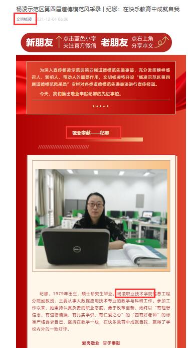 【文明杨凌】杨凌示范区第四届道德模范风采录 | 纪娜:在快乐教育中成就自我