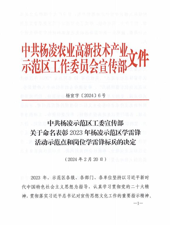 2月20日,杨凌示范区公布了2023年杨凌示范区学雷锋活动示范点和岗位学雷锋标兵名单,学校生物工程学院、动物工程学院获评学雷锋活动示范点教师任杰、刘博荣获“岗位学雷锋标兵”称号。