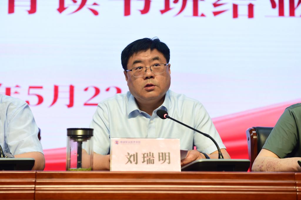 党委副书记刘瑞明在主持结业式时强调,党员领导干部要在深学、真悟和活用上下功夫,带头学纪、知纪、明纪、守纪,并传达好读书班会议精神;要精心组织好党纪学习教育工作,夯实责任,精心组织,加强创新,强化指导,进一步丰富学习教育载体,增强学习实效,并加强全过程监督检查,确保党纪学习教育落地见效;要把党纪学习教育转化为推动工作的具体行动,建立常态化学习机制,坚持学以致用,明确责任,勇于担当,做忠诚担当的领导干部,为党的教育事业和学校高质量发展贡献力量。